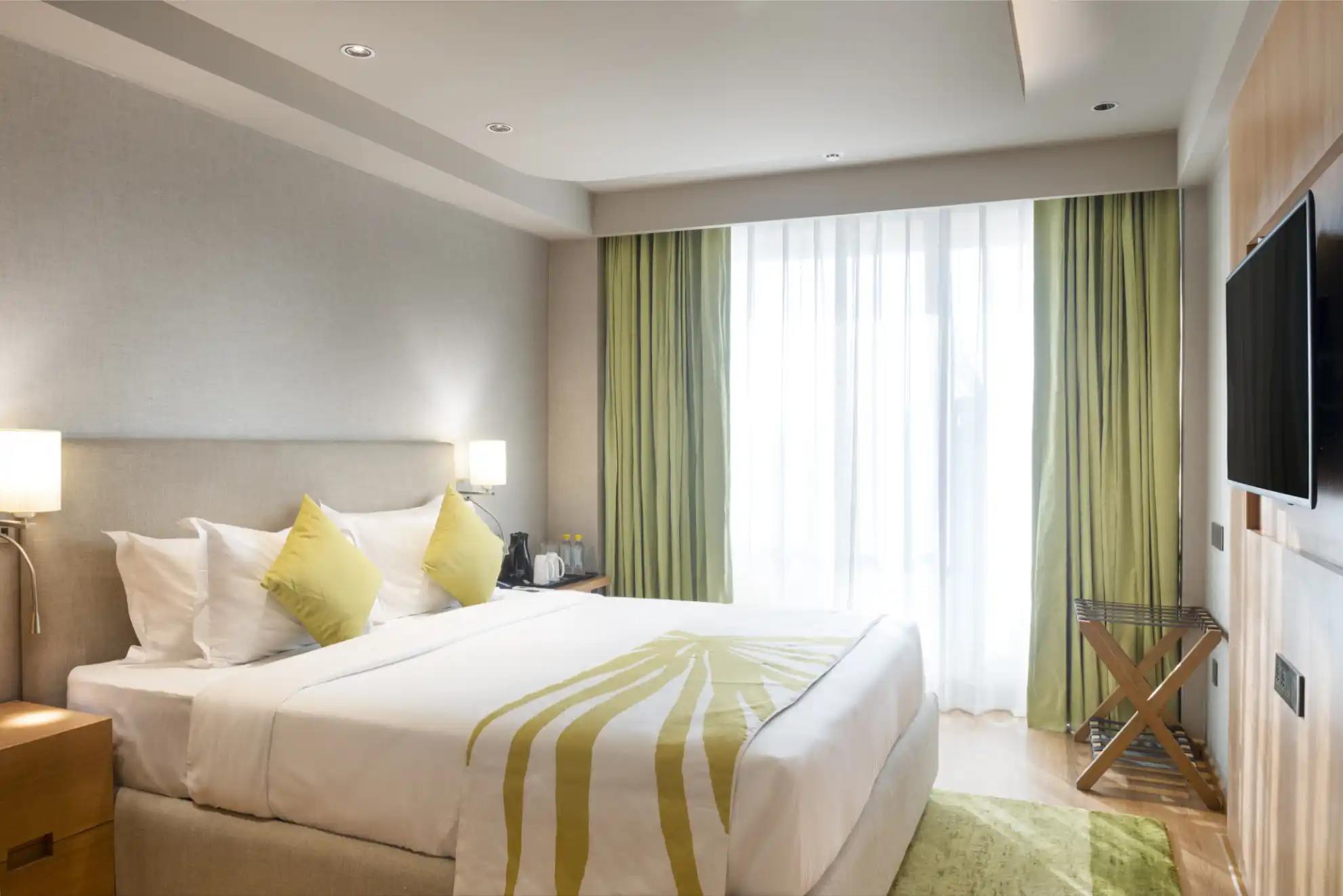 The retreat takes place at Modi Yoga Retreat, which offers comfortable, well-designed rooms with options for single and shared accommodation. The setting is quiet and spacious, with access to wellness and spa facilities, supporting both practice and recovery throughout the week.